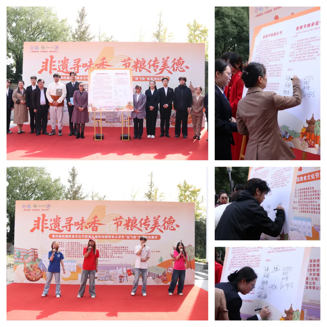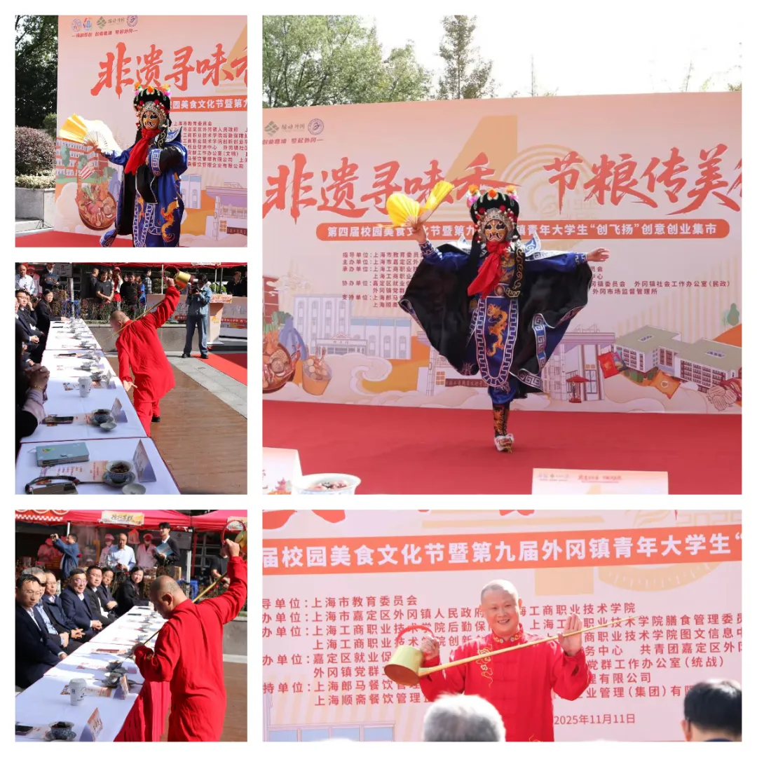 2025年11月11日,由上海市嘉定区外冈镇人民政府和上海工商职业技术学院联合主办的以“非遗寻味香、节粮传美德”为主题的上海工商职业技术学院第四届校园美食文化节暨外冈镇青年大学生第九届“创飞扬”创意创业集市活动在两校区生活园区隆重举行。本次活动旨在弘扬中华优秀传统饮食文化,深化师生对非遗技艺的认知,同时倡导节约粮食的美德,激发青年学子的创新精神与实践能力。