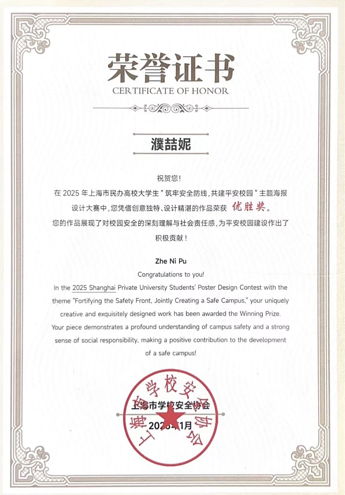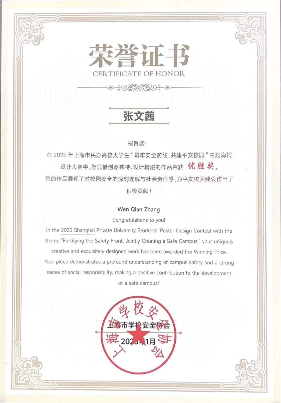 近日,2025年度上海市民办高校大学生“筑牢安全意识,共建平安校园”主题海报设计大赛获奖名单正式揭晓,我校一举斩获多项重要荣誉,为校园安全文化建设再添亮丽一笔。