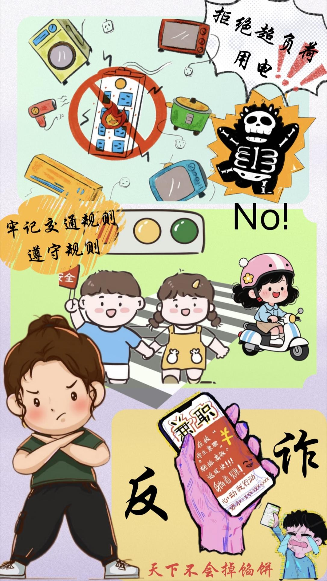 经专业评审,我校3位学生脱颖而出:商学院 2024会展策划与管理1班 王璐怡同学的作品《别让语言成霸凌之刃》以深刻的主题内涵、独特的视觉表达和精湛的设计技巧,在众多参赛作品中崭露头角,荣获个人作品“一等奖”;商学院 2024会展策划与管理1班 濮喆妮同学的作品《安全校园在心中》、珠宝与艺术设计学院 2024数字媒体艺术设计2班 张文茜同学的作品《防火逃生》紧扣大赛主题,视角新颖、内容充实,充分展现了对校园安全的深刻理解,分别荣获个人作品“优胜奖”。