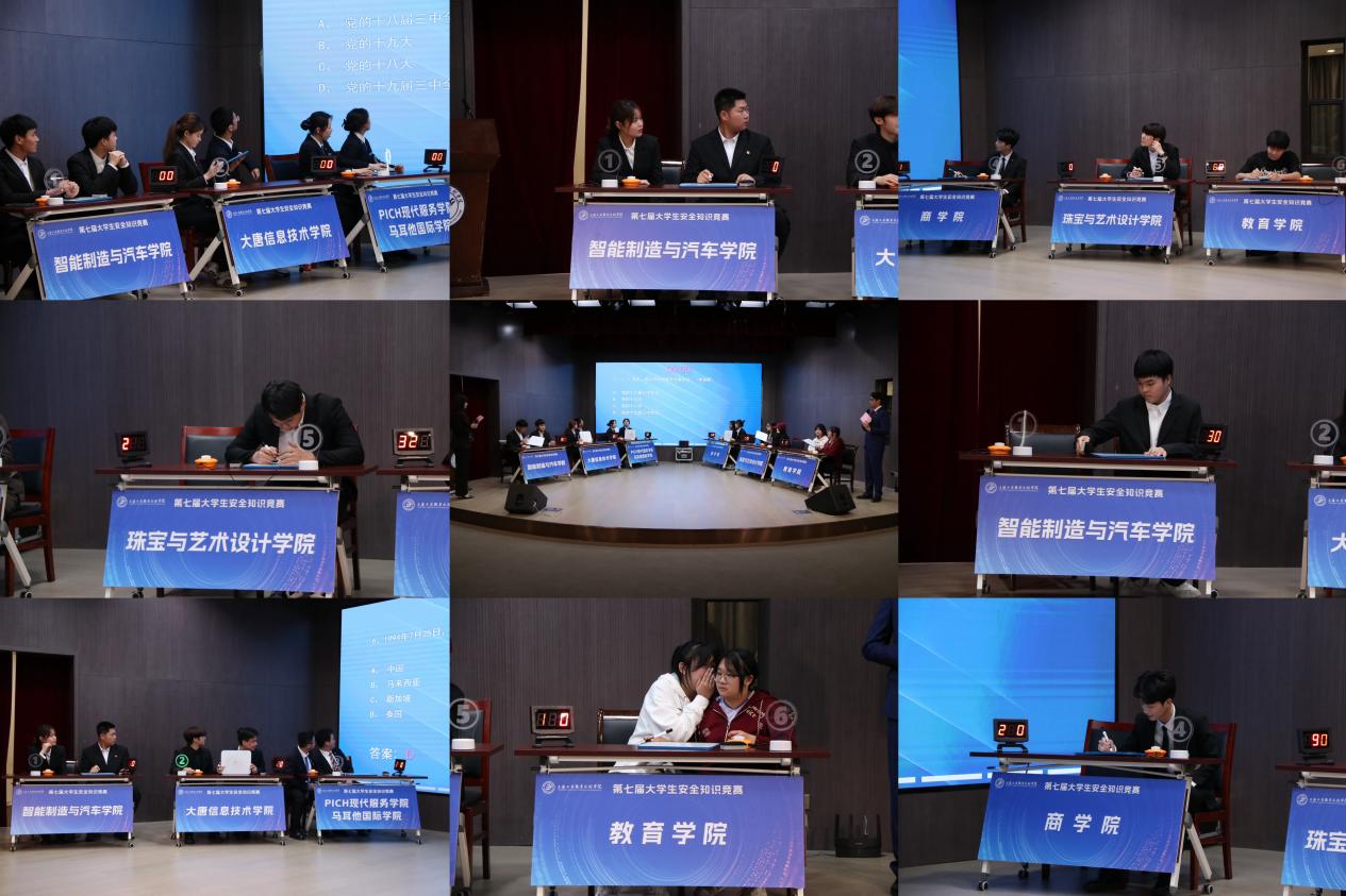 为进一步深化校园安全教育,普及安全知识,提升学生安全防范与应急避险能力,扎实推进平安校园建设工作,4月20日,上海工商职业技术学院第七届大学生安全知识竞赛顺利举办。校长助理徐晓燕,教务处处长赵双全,党委学工部(处)部长陈旭,公共基础学院院长、直属党支部书记李小玲,团委书记谢猛,设备管理处副处长(主持工作)顾琼华,各二级学院书记、副书记出席本次活动。活动由PICH现代服务学院中高餐饮221班王晟、教育学院中高现代文秘221班龚斯妍主持。